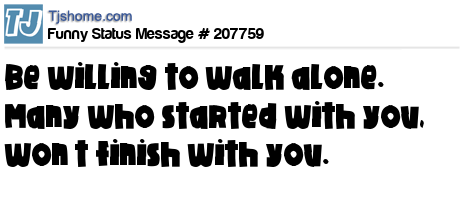 X says Be willing to walk alone. Many who started with you, won’t finish with you.