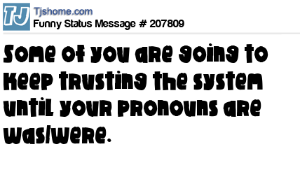 X says Some of you are going to keep trusting the system until your pronouns are was/were. 🙁