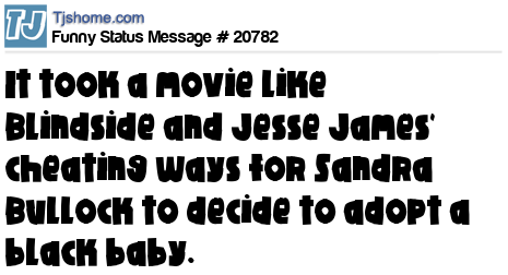 X It took a movie like Blindside and Jesse James' cheating ways for Sandra Bullock to decide to adopt a black baby.