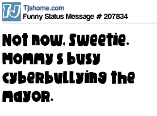 X says Not now, Sweetie. Mommy’s busy cyberbullying the mayor. 😁