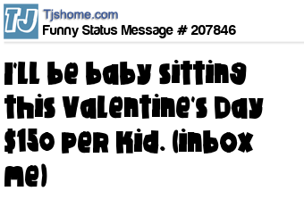 X says I'll be baby sitting this Valentine's Day $150 per kid. (inbox me)