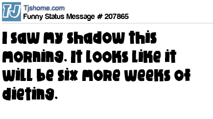 - # 196724 I saw my shadow this morning. Looks like it will be six more weeks of dieting.