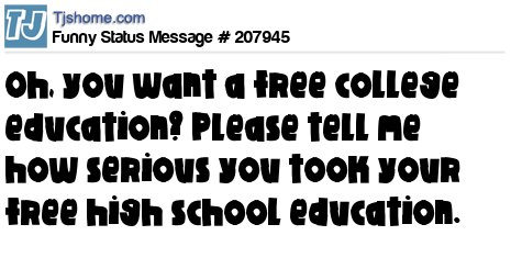 X is Oh, you want a free college education? Please tell me how serious you took your free high school education.