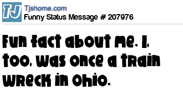 X says Fun fact about me. I, too, was once a train wreck in Ohio.