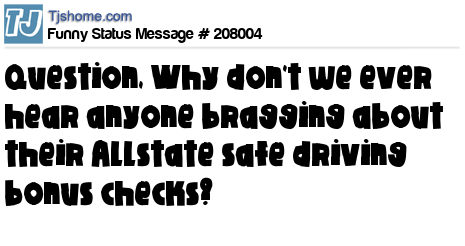 - # 145251 Why don't we ever hear anyone bragging about their Allstate safe driving bonus checks?