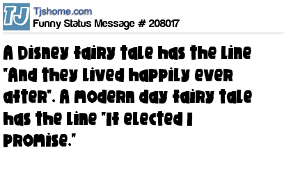 X is A Disney fairy tale has the line "And they lived happily ever after". A modern day fairy tale has the line "If elected I promise."