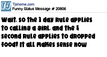 X Wait, so the 3 day rule applies to calling a girl, and the 5 second rule applies to dropped food? It all makes sense now