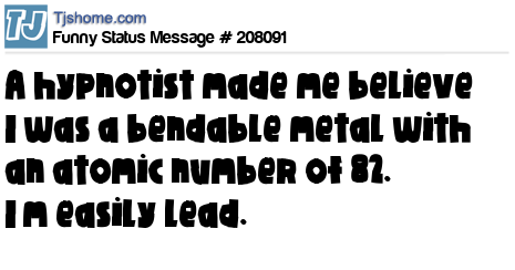 X says A hypnotist made me believe I was a bendable metal with an atomic number of 82. I’m easily lead.