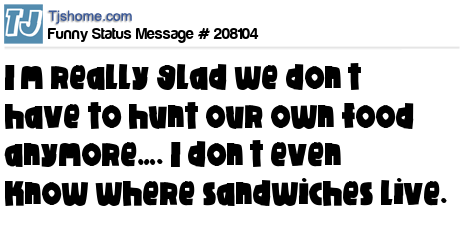 - # 122473 I'm glad I don't have to hunt for my food. I'm not even sure where sandwiches live.