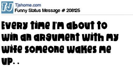 - # 174628 Every time I'm about to win an argument with my wife someone wakes me up.