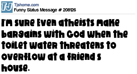 X says I'm sure Even atheists make bargains with God when the toilet water threatens to overflow at a friend’s house.