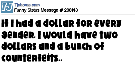X says If I had a dollar for every gender, I would have two dollars and a bunch of counterfeits..