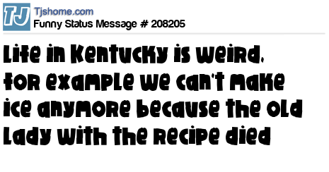 X is Life in Kentucky is weird, for example we can't make ice anymore because the old lady with the recipe died