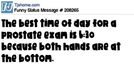X says The best time of day for a prostate exam is 6:30 because both hands are at the bottom.