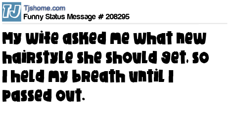X says My wife asked me what new hairstyle she should get, so I held my breath until I passed out.