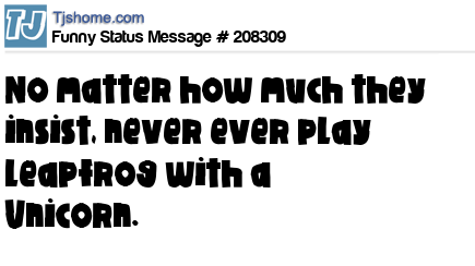 - # 189105 Never play leapfrog with a unicorn. That's all.