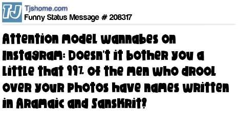 X says Attention model wannabes on Instagram: Doesn't it bother you a little that 99% of the men who drool over your photos have names written in Aramaic and Sanskrit?