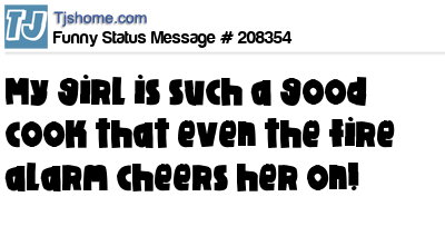 X is My girl is such a good cook that even the fire alarm cheers her on!