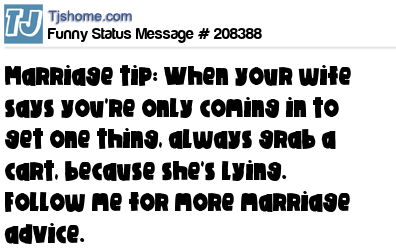 - # 201849 Marriage tip #3: When you have to run some errands and your wife doesn't want to go with you, just grab yourself some Dunkin Donuts, don't get her any. When she asks why you didn't grab her anything, just say, "If you truly loved me, you would have gone w