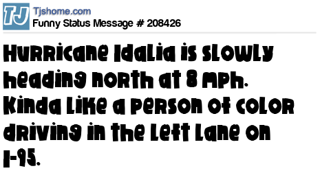X says Hurricane Idalia is slowly heading north at 8 mph. Kinda like a person of color driving in the left lane on I-95.