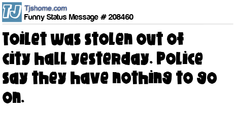 - # 56450 Toilet was stolen out of City Hall yesterday. Police say they have nothing to go on!