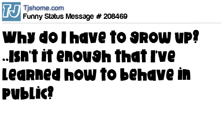 X is Why do I have to grow up? ..Isn't it enough that I've learned how to behave in public?