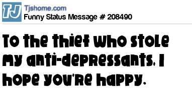 X says To the thief who stole my anti-depressants, I hope you're happy.