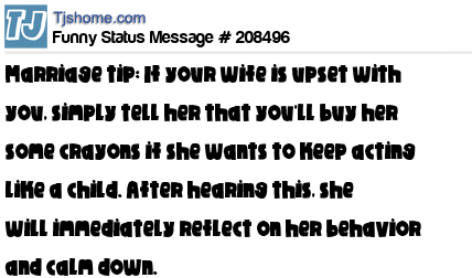 X is Marriage tip: If your wife is upset with you, simply tell her that you'll buy her some crayons if she wants to keep acting like a child. After hearing this, she will immediately reflect on her behavior and calm down.