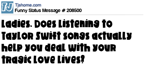 X says Ladies. Does listening to Taylor Swift songs actually help you deal with your tragic love lives?