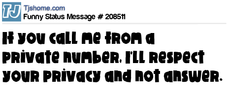 - # 185032 If you call me from a private number I'll respect your privacy and not answer