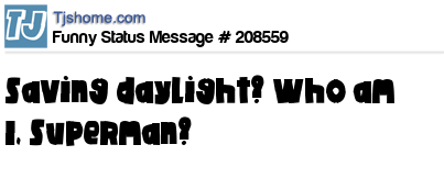 - # 208773 This Sunday, Daylight Saving Time begins. We don't save any daylight. It gets stolen from the morning and is given to the evening. Daylight Stealing Time.