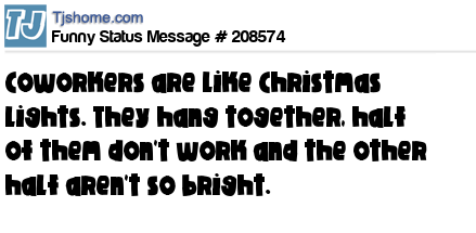 - # 205218 Co-workers are like string lights. They all hang together, half of them don’t work and the other half aren’t so bright.