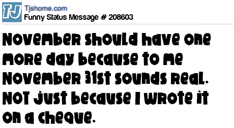 X says November should have one more day because to me November 31st sounds real. NOT just because I wrote it on a cheque.