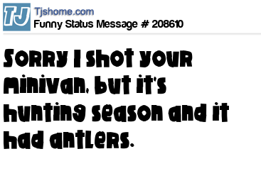 X says Sorry I shot your minivan, but it's hunting season and it had antlers.