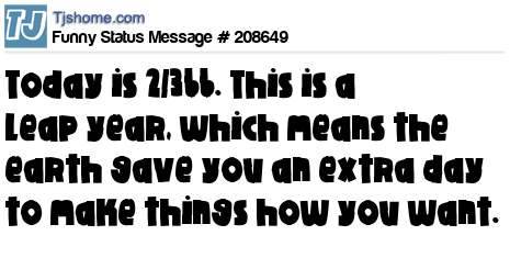 X says Today is 2/366. This is a leap year, which means the earth gave you an extra day to make things how you want.