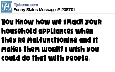 - # 70918 You know how we smack your household appliances when they're malfunctioning and it makes them work? I wish you could do that with people.