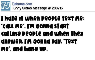 X is I hate it when people text me: "Call me". I'm gonna start calling people and when they answer, I'm gonna say, "Text me", and hang up.