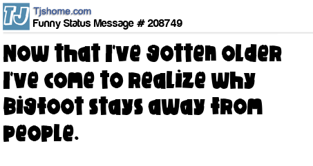 - # 210907 Now that I've gotten older, I've come to realize why Bigfoot stays away from people.