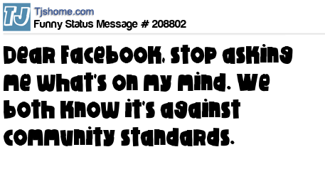 X is Dear Facebook, stop asking me what's on my mind. We both know it's against community standards.