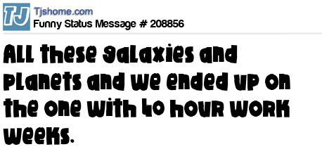 X is All these galaxies and planets and we ended up on the one with 40 hour work weeks.