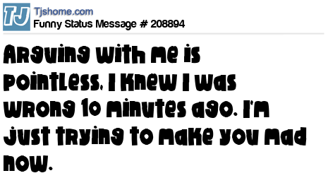 X is Arguing with me is pointless, I knew I was wrong 10 minutes ago. I'm just trying to make you mad now.