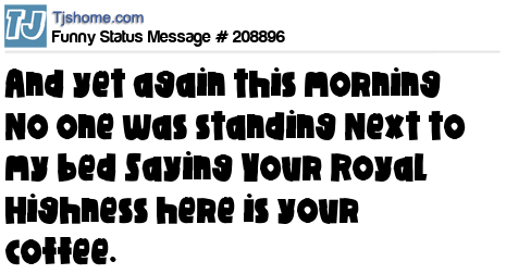 X is And yet again this morning No one was standing Next to my bed Saying Your Royal Highness here is your coffee.