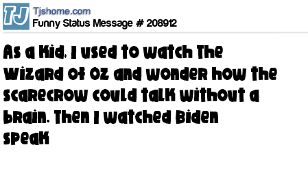 - # 210767 As a kid, I used to watch the Wizard of Oz and wonder how the scarecrow could talk without a brain. Then I got Facebook.
