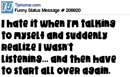 X is I hate it when I'm talking to myself and suddenly realize I wasn't listening... and then have to start all over again.