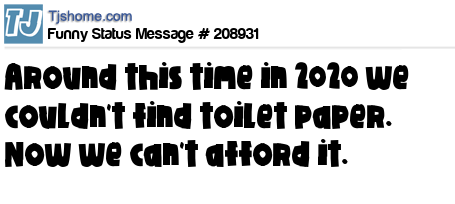 X is Around this time in 2020 we couldn't find toilet paper. Now we can't afford it.