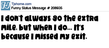 - # 208145 I always go the extra mile but sometimes it's because I missed the exit.