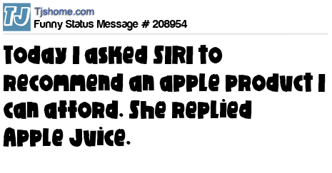 X says Today I asked SIRI to recommend an apple product I can afford. She replied Apple Juice.