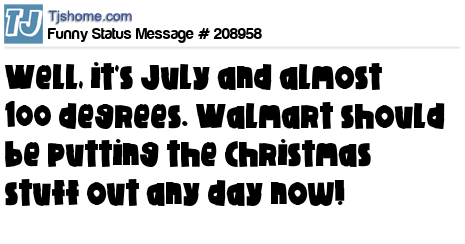 X is Well, it's July and almost 100 degrees. Walmart should be putting the Christmas stuff out any day now!