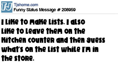X is I like to make lists. I also like to leave them on the kitchen counter and then guess what's on the list while I'm in the store.