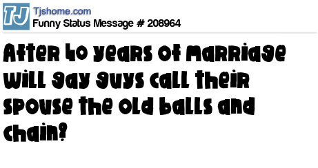 - # 160038 So, after 40 years of marriage will g@y guys start referring to their spouses as "The Old Balls and Chain?"